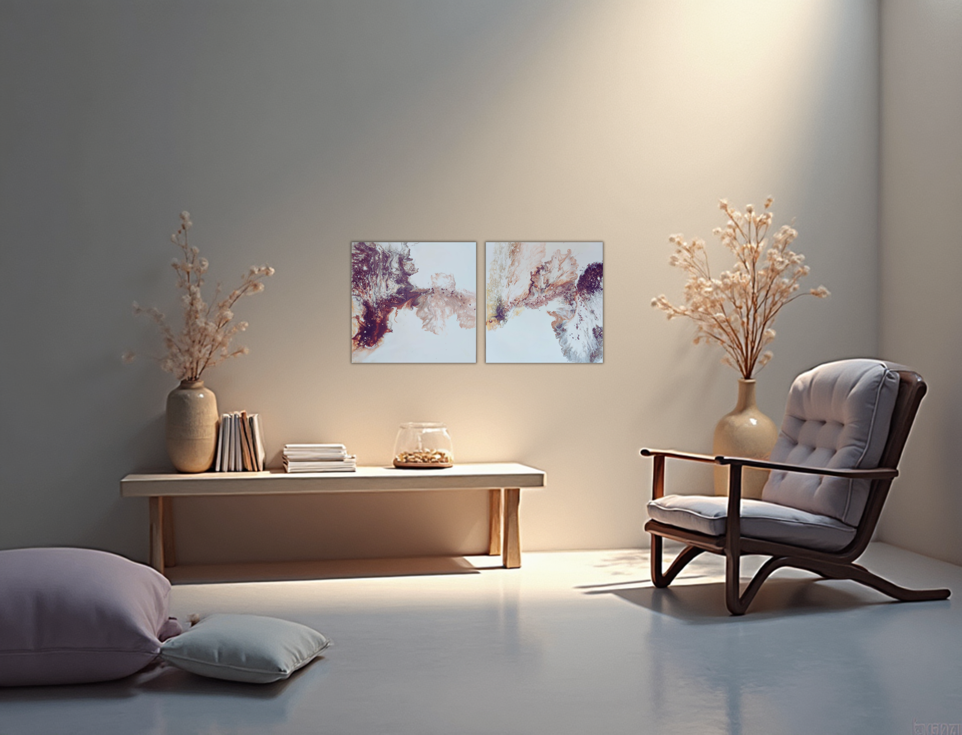 Každý z obrazů má rozměry 40 × 40 cm a hloubku 1,5 cm.
