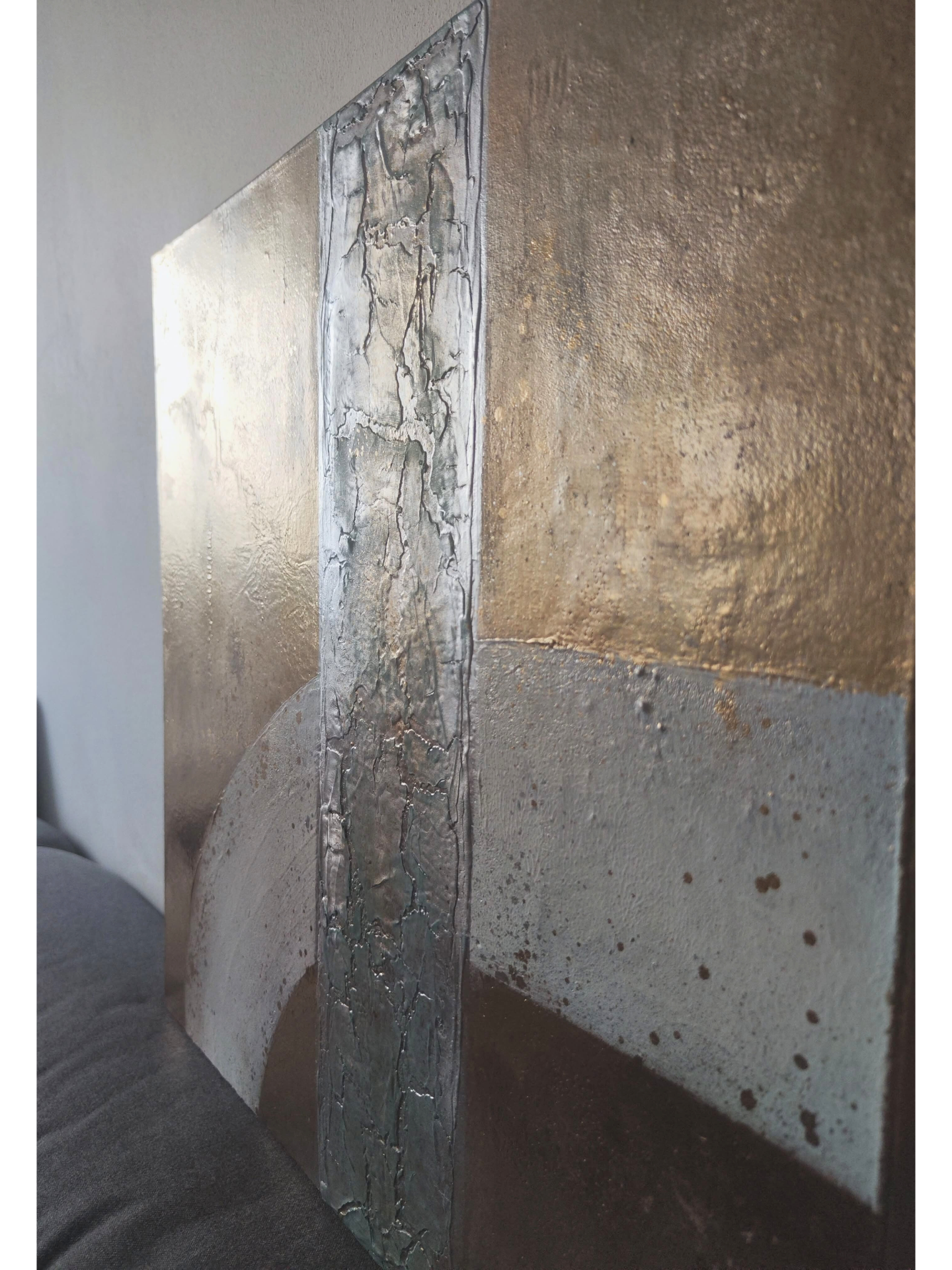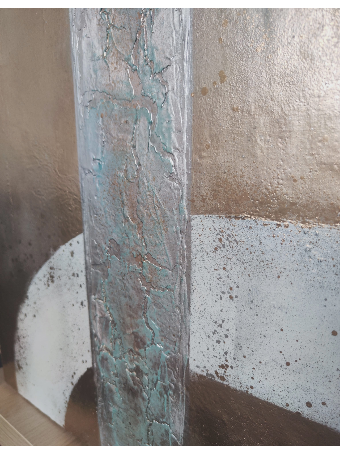 Dílo s názvem Měděnka je inspirováno přirozenou patinou mědi a jejími proměnlivými odstíny. Barevná kompozice propojuje tóny zelené, tyrkysové a bílé. Obraz doplňují barvy s kovovým odleskem a strukturovaný povrch, jenž obrazu dodává hloubku a autenticitu.
