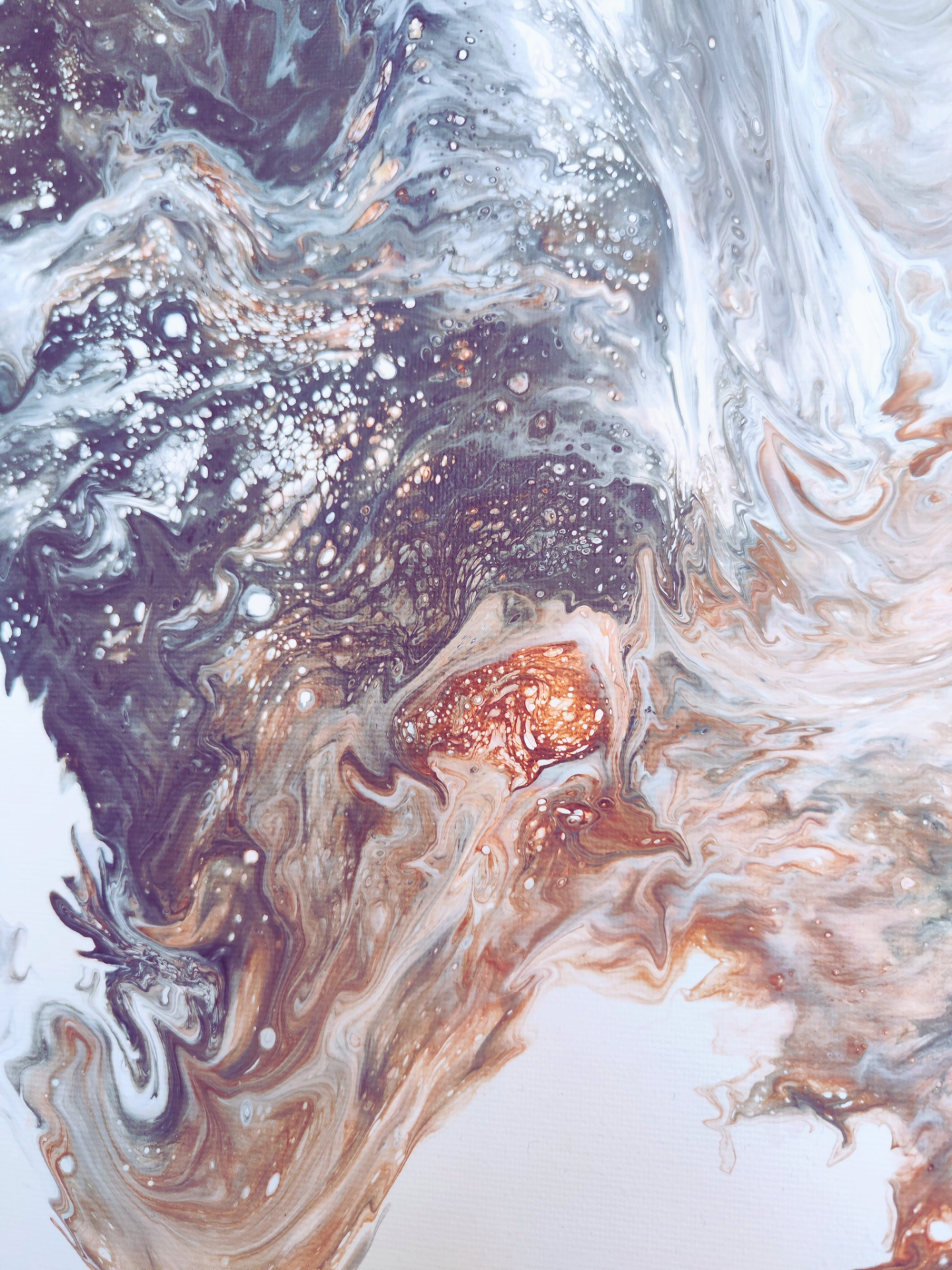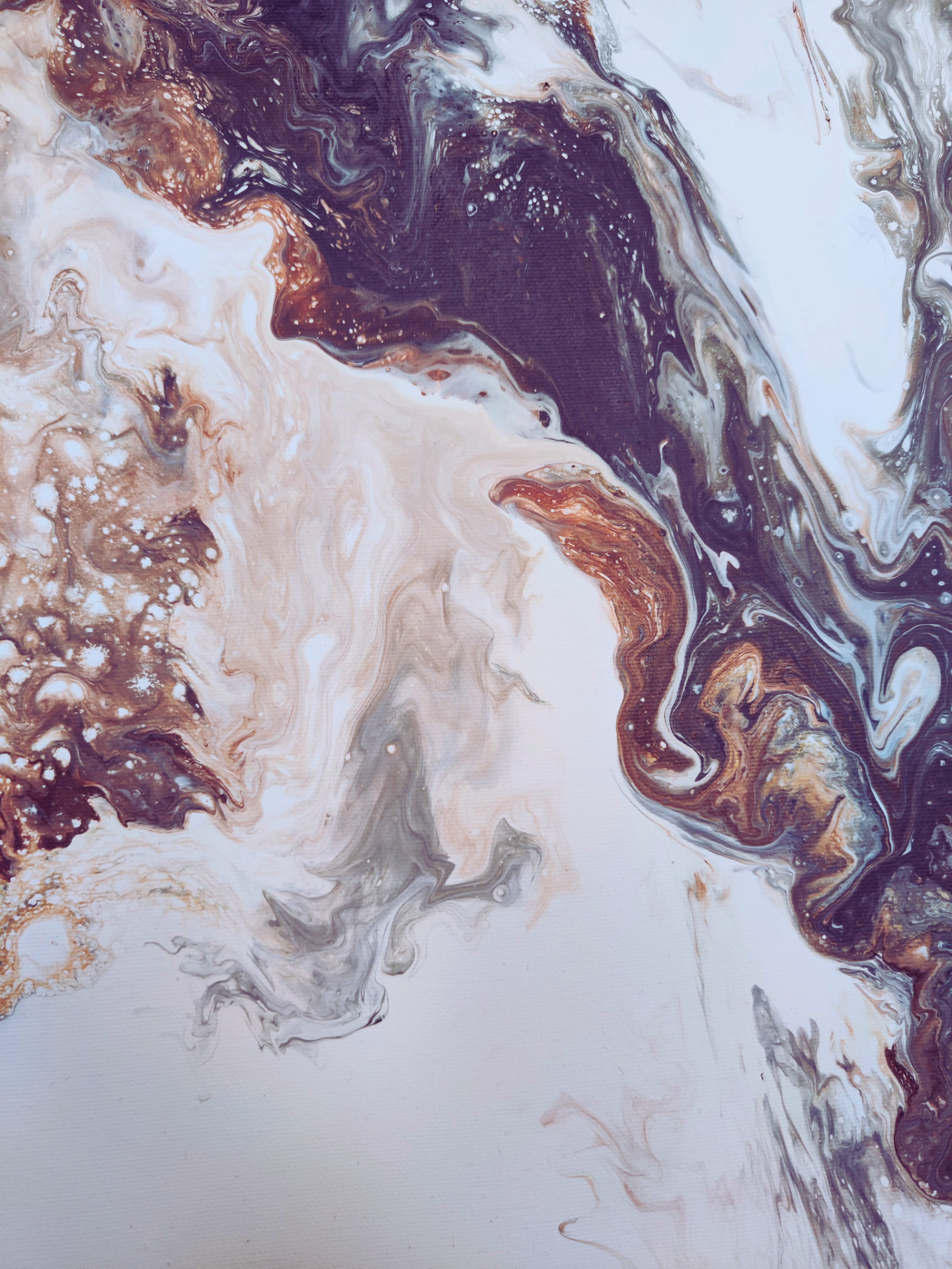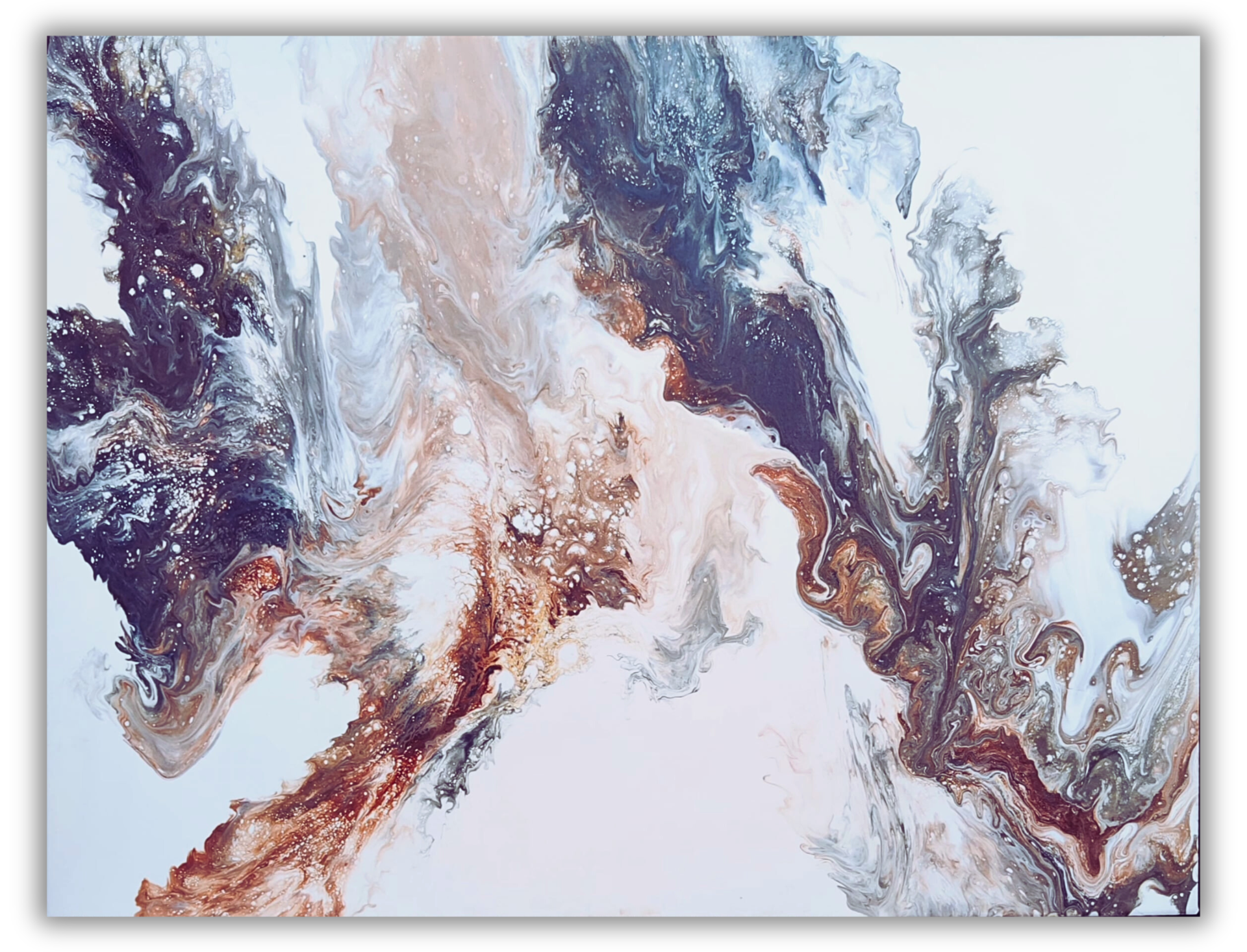 Tento obraz s tématikou Rez jako poezie času je definován odstíny hnědé, černé, metalické růžové a zlaté.