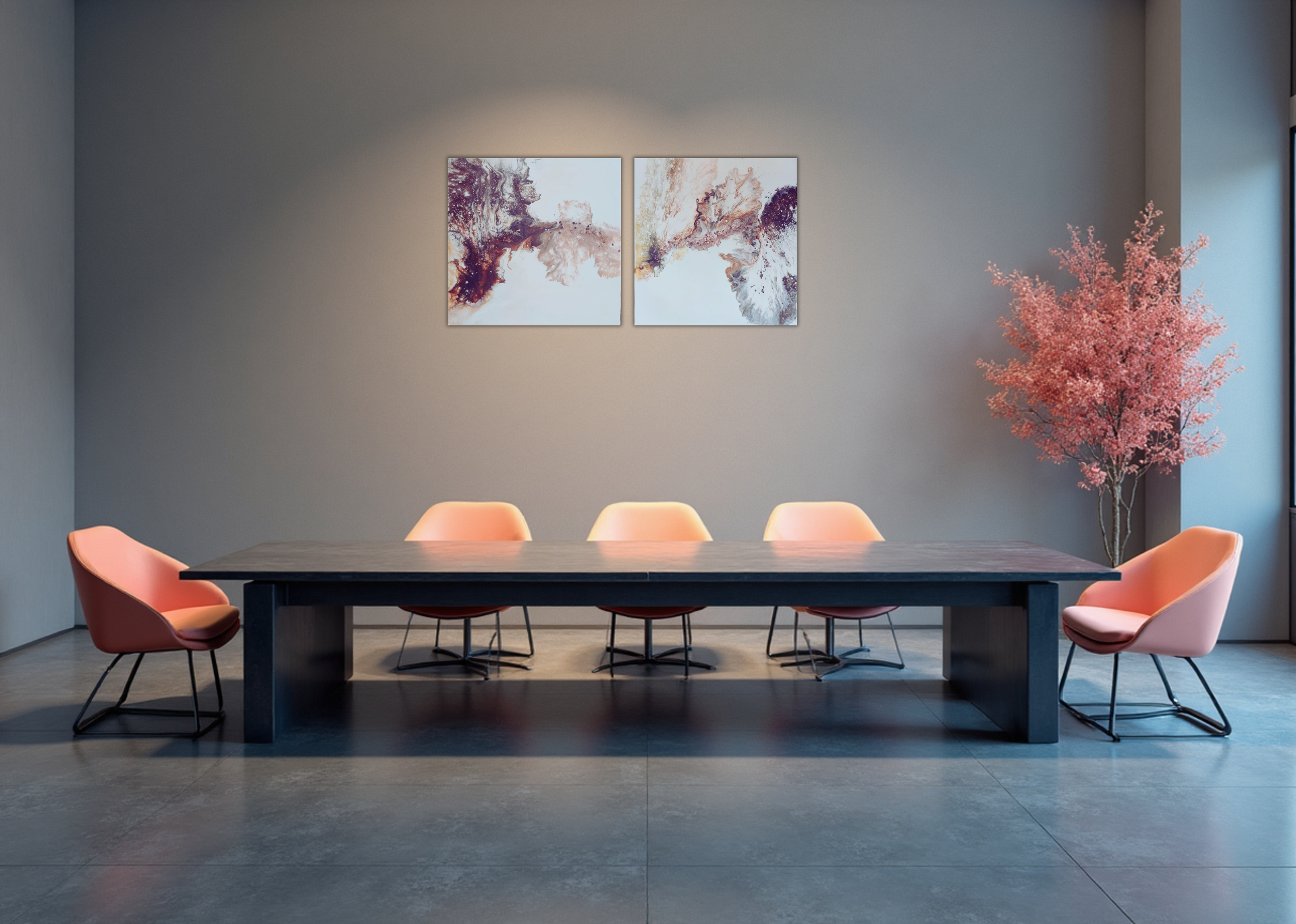 Akryl, plátno. Kolekce dvou obrazů, z nichž každý má 40 × 40 cm.